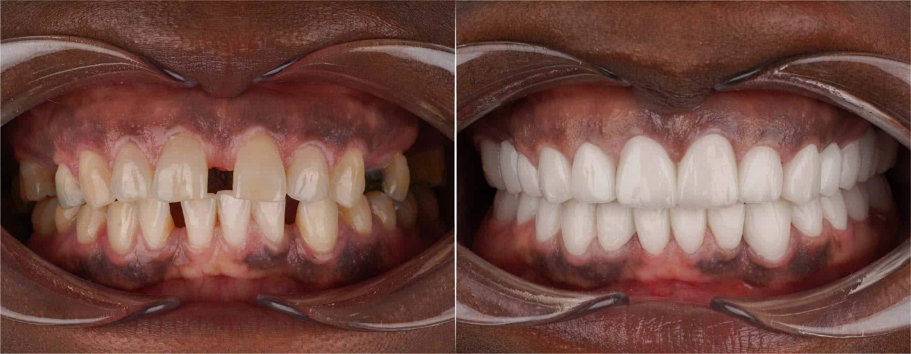 يبدو الفرق واضحًا بين الأسنان قبل تقويم الأسنان المعدني وبعد تركيبه والانتهاء من العلاج، وفيما يلي صورة توضّح هذا الفرق:
