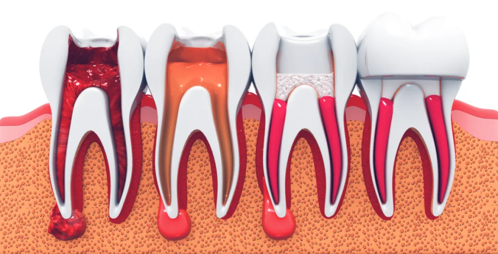 A root canal is performed to save a damaged or infected tooth instead of extracting it. The most common causes of tooth damage or infection are:– Dental caries (tooth decay) due to plaque buildup – Cracked or fractured teeth as a result of trauma or accidents – Gum disease (periodontal disease)It is recommended to visit Batal Dental Center in Saudi Arabia as soon as possible if you are experiencing tooth pain or gum pain.Also read: Everything You Need to Know About Dental Bonding
